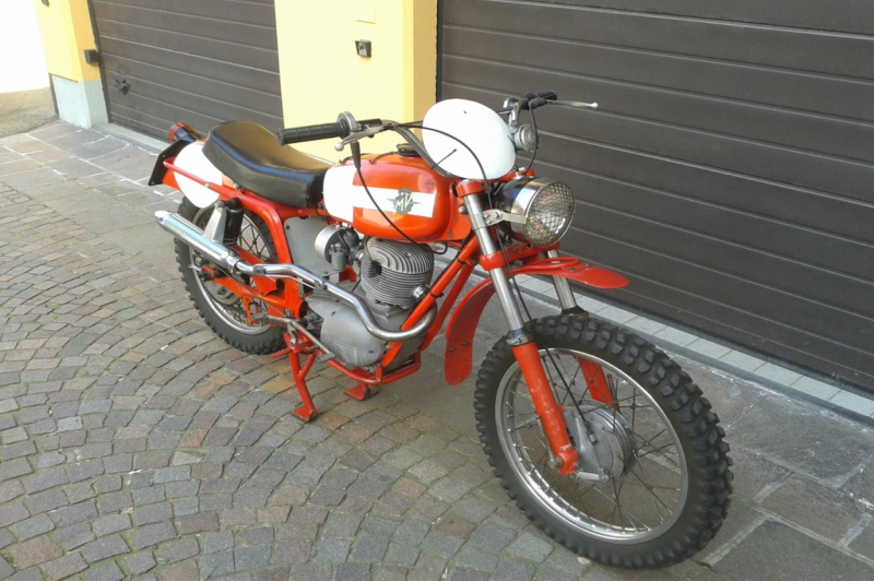 La MV è stata costruita in due versioni. La prima con il serbatoio più tondo, forcella anteriore Ceriani GP e motore con 10 cavalli. La moto venne data alla squadra delle Fiamme Oro e ottenne buonissimi risultati. Il modello che proponiamo (che è originale e conservatissimo) è un secondo tipo che differenziava dal primo per moltissimi particolari: serbatoio, freno anteriore, forcella, carburatore, cavalli del motore (che erano 13 anzichè 10) e altri particolari. La moto che noi proponiamo (che è originale) ha l'attestazione della MV Agusta e, come già detto, è una seconda serie perfettamente conservata. I documenti sono in regola e pronti per il passaggio. La targa è quella originale e il libretto è a fogli (ha anche il foglio complementare originale). Di questa moto abbiamo la dichiarazione del museo MV Agusta che attesta l'originalità della moto e la corrispondenza fra il numero di telaio e di motore, prodotta nel 1968. Fra la prima e la seconda serie di questa moto si parla di un massimo di 70 pezzi, di cui 50 della prima versione e il restante della seconda (e quindi 20 pezzi). La moto ovviamente è perfettamente funzionante. |